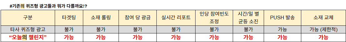 과금 방식 : 퀴즈 참여 당 과금 (CPQ 40원)